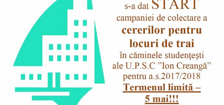 Dragi studenți! s-a dat START campaniei de colectare a cererilor pentru locuri de trai în căminele