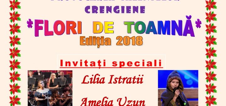 Centrul de Educație artistică și Instruire Complementară în colaborare cu Comitetul Sindical al Studenților și Senatul Studențesc organizează Festivalul de artă Provocarea talentelor crengiene ”FLORI DE TOAMNĂ” Ediția 2018. Invitați speciali: Lilia Istrati și Amelia Uzun. Festivalul va avea loc la 2 Octombrie ora 15:00 în Sala de Festivități UPSC....