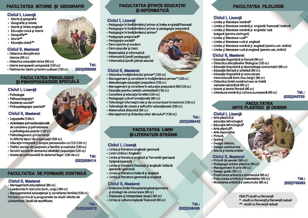 - Limba și literatura română * (cu frecvență / cu frecvență redusă)