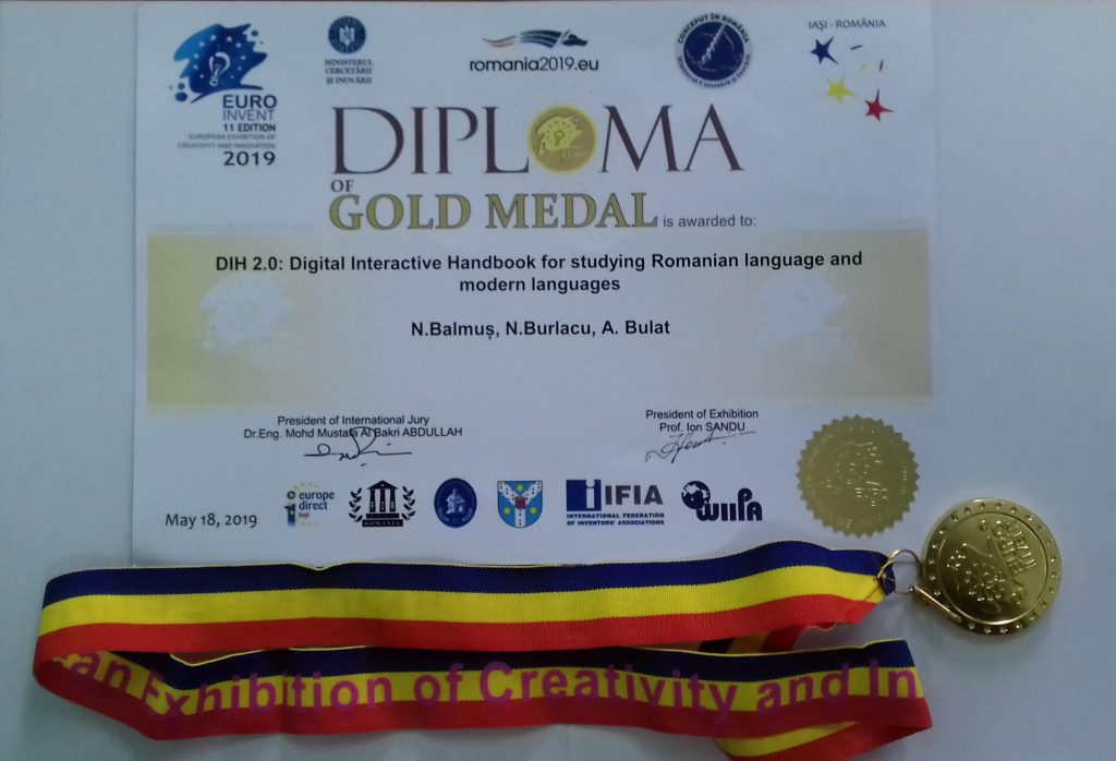 • Medallia de aur: Invenția prezentată de univ. dr. Balmuș Nicolae “DIH 2.0: Digital Interactive Handbook for studying Romanian Language and Modern Languages” // “MDI 2.0: Manual Digital Interactiv pentru studierea limbii române și ale limbilor moderne”