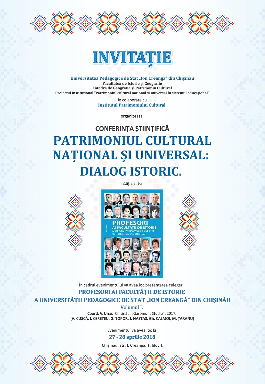 Invitație la conferința științifică Patrimoniul cultural național și universal:Dialog istoric