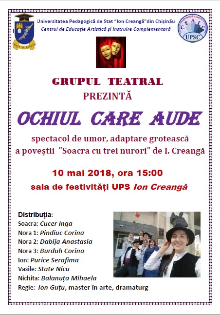 GRUPUL  TEATRAL PREZINTĂ OCHIUL  CARE  AUDE spectacol de umor, adaptare grotească a poveștii  ”Soacra cu trei nurori” de I. Creangă