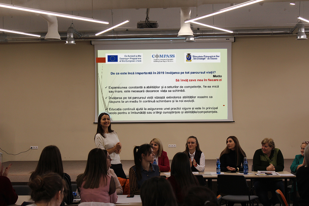 Pe data de 2 decembrie 2019, în cadrul Proiectului  „CĂTRE MODELUL UNIVERSITAR EUROPEAN DE ÎNVĂȚARE CONTINUA ÎN MOLDOVA – COMPASS”, realizat cu susținerea Comisiei Europene în cadrul programului ERASMUS+.  a fost organizat seminarul metodologic PERSPECTIVE ȘI OPORTUNITĂȚI ÎN FORMAREA PRFESIONALĂ A CADRELOR DIDACTICE. Gazda evenimentului, Facultatea de Filologie și Istorie,  a întrunit peste 50 de studenți de la toate treptele și programele de instruire care au participat în 5 ateliere simultane și blitz-interviuri cu oaspeții de onoare: Mariana Marin, dr. conf. Președinte Asociația Generală a Învățătorilor, Director, redactor-șef Revista Învățătorul Modern, V. Buga, psiholog, E. Cvasniuc, cadru didactic, Liceul Teoretic „Gh. Asachi, Cristina Popescu, șef, Centru de Ghidare și Consiliere în Cadrieră, UPS „Ion Creangă”  etc.