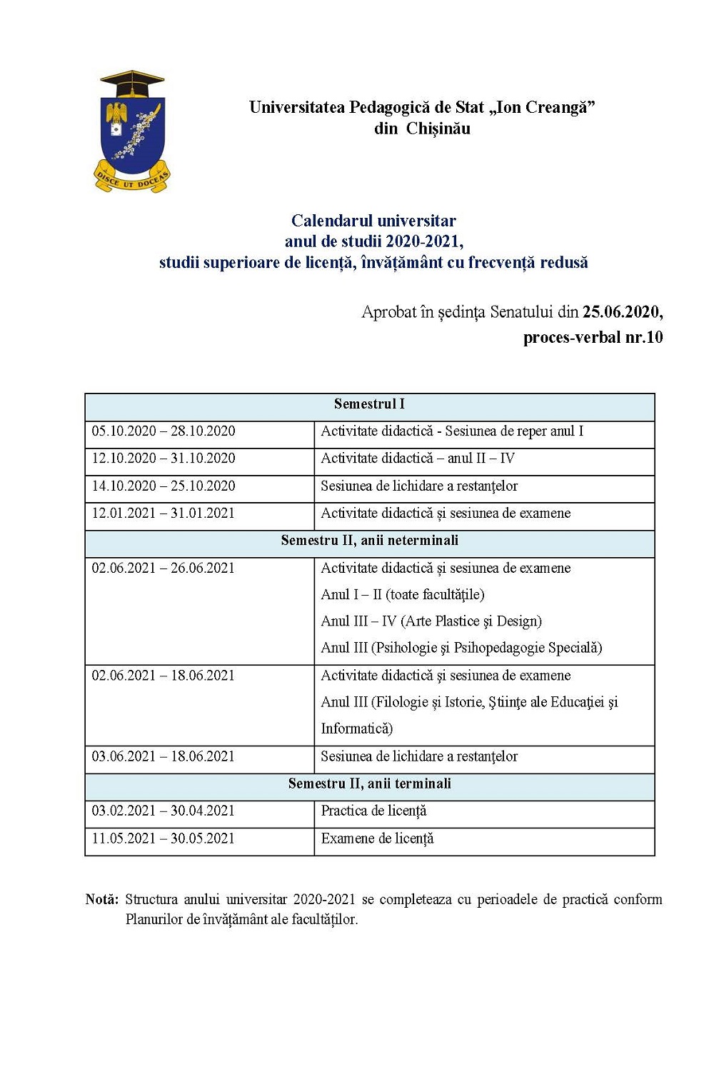 Calendar Universitar